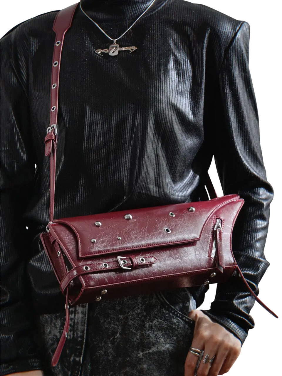 • Metal stud rivet accents