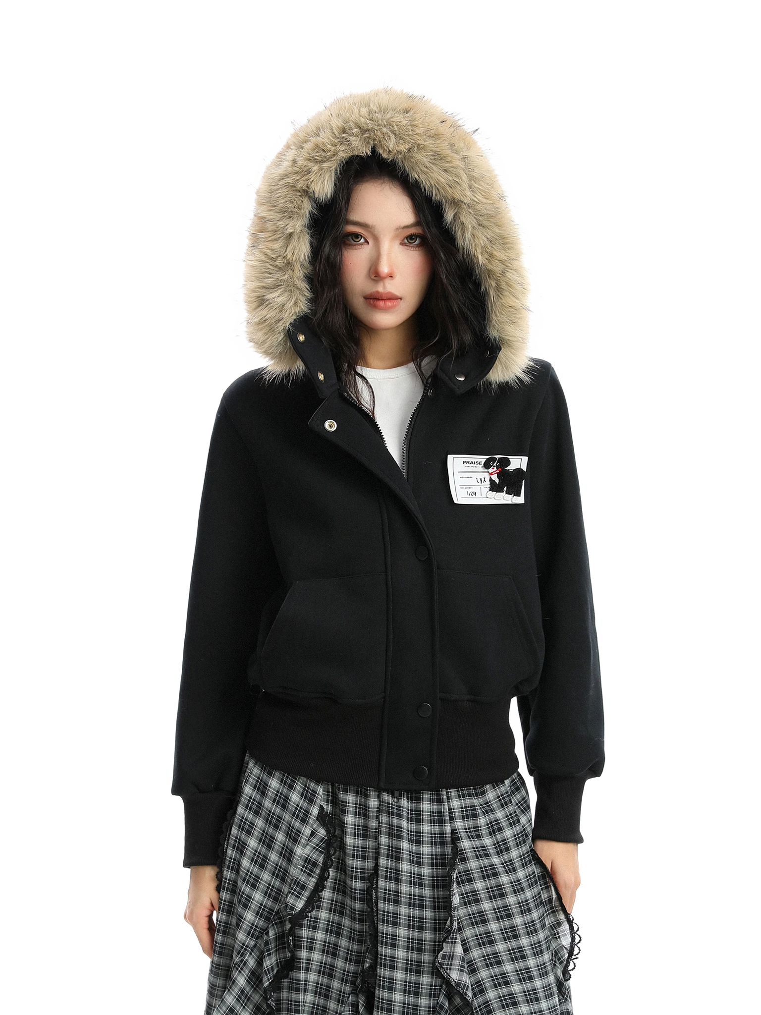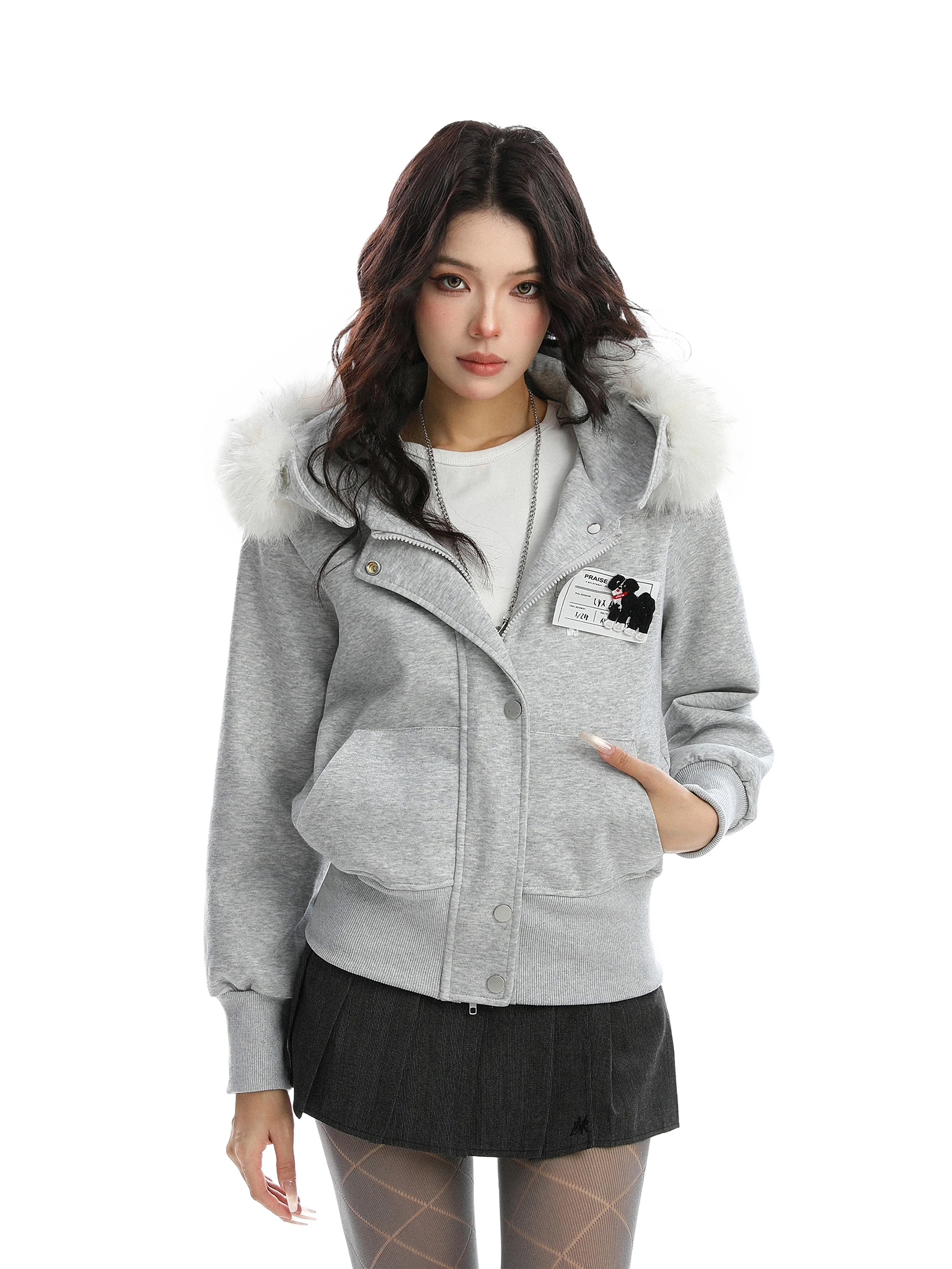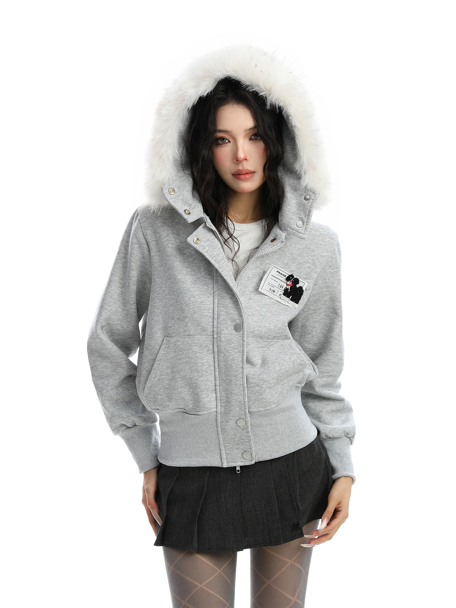 'Cipher' Fur-Trimmed Cropped Cotton Hoodie
