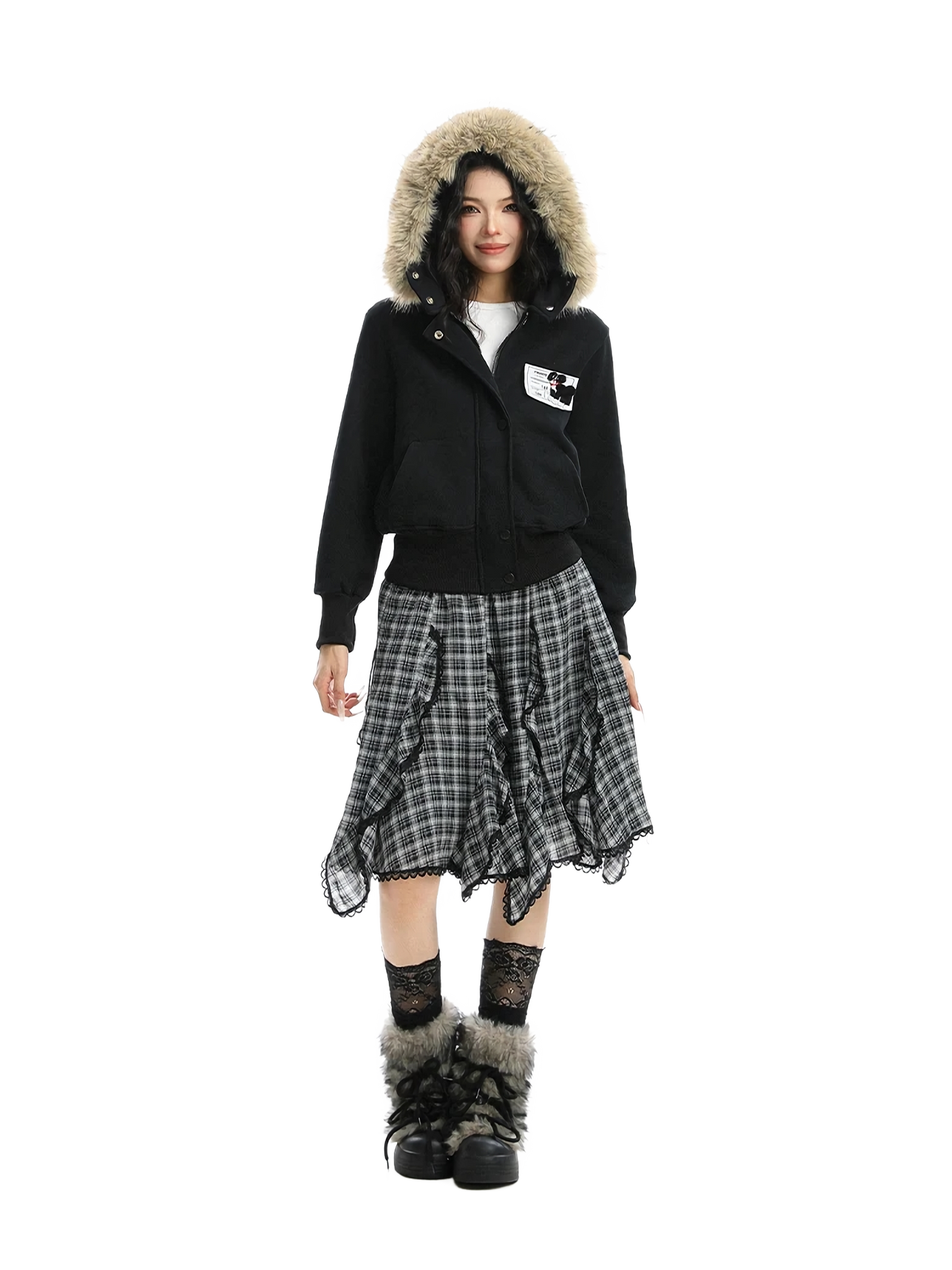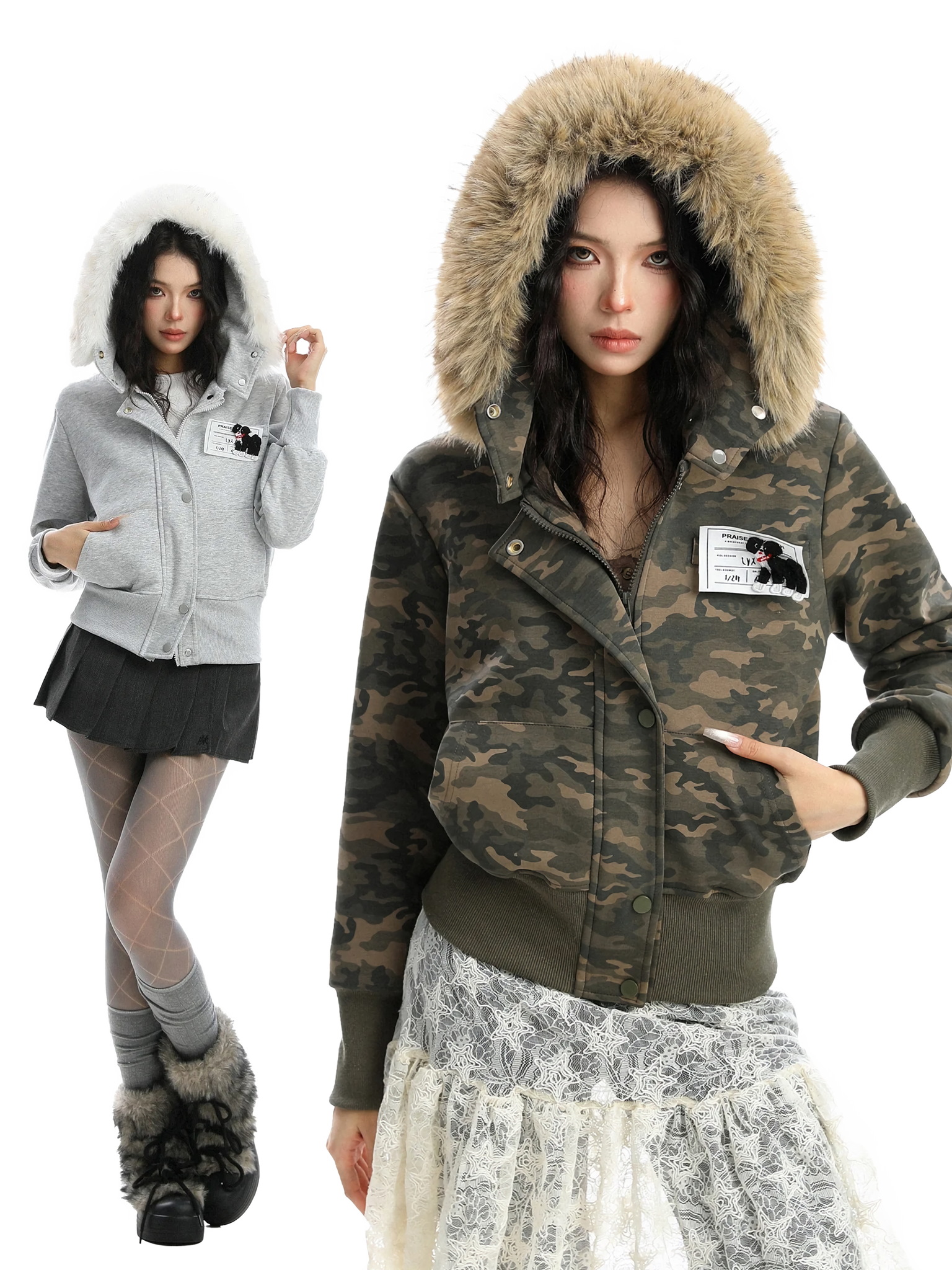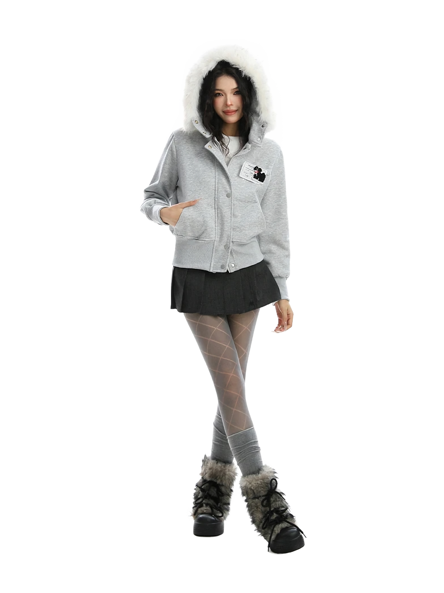 'Cipher' Fur-Trimmed Cropped Cotton Hoodie