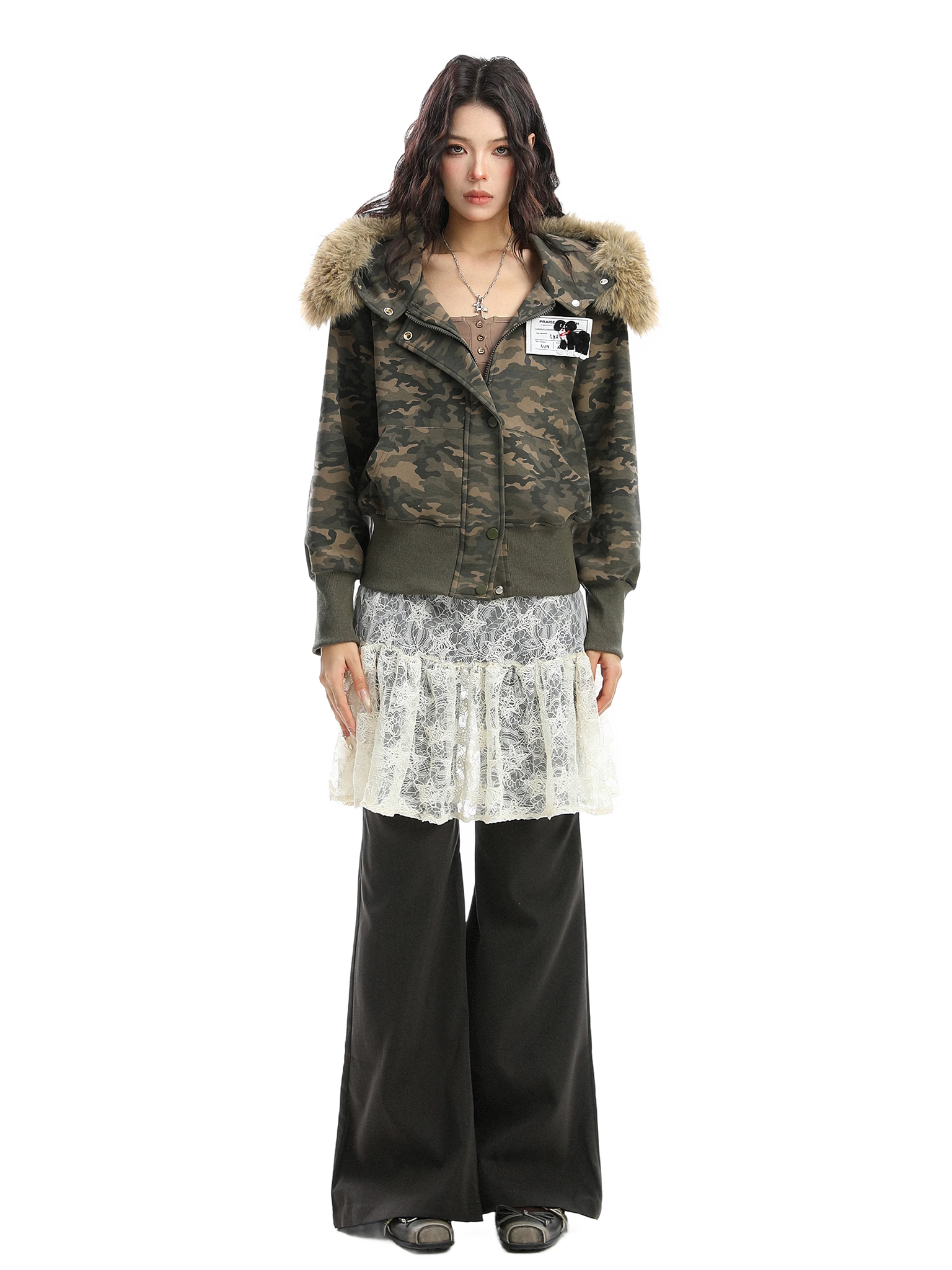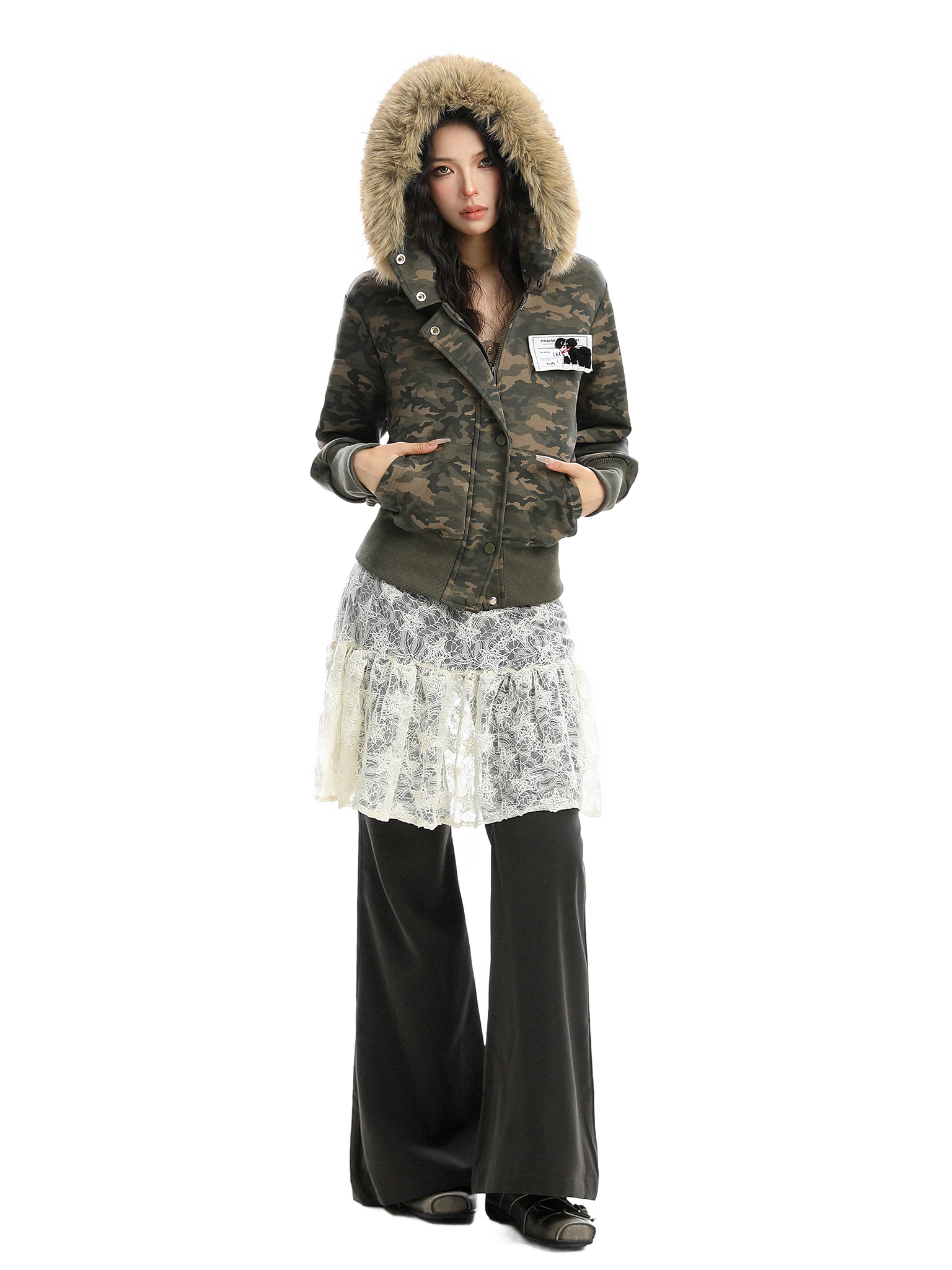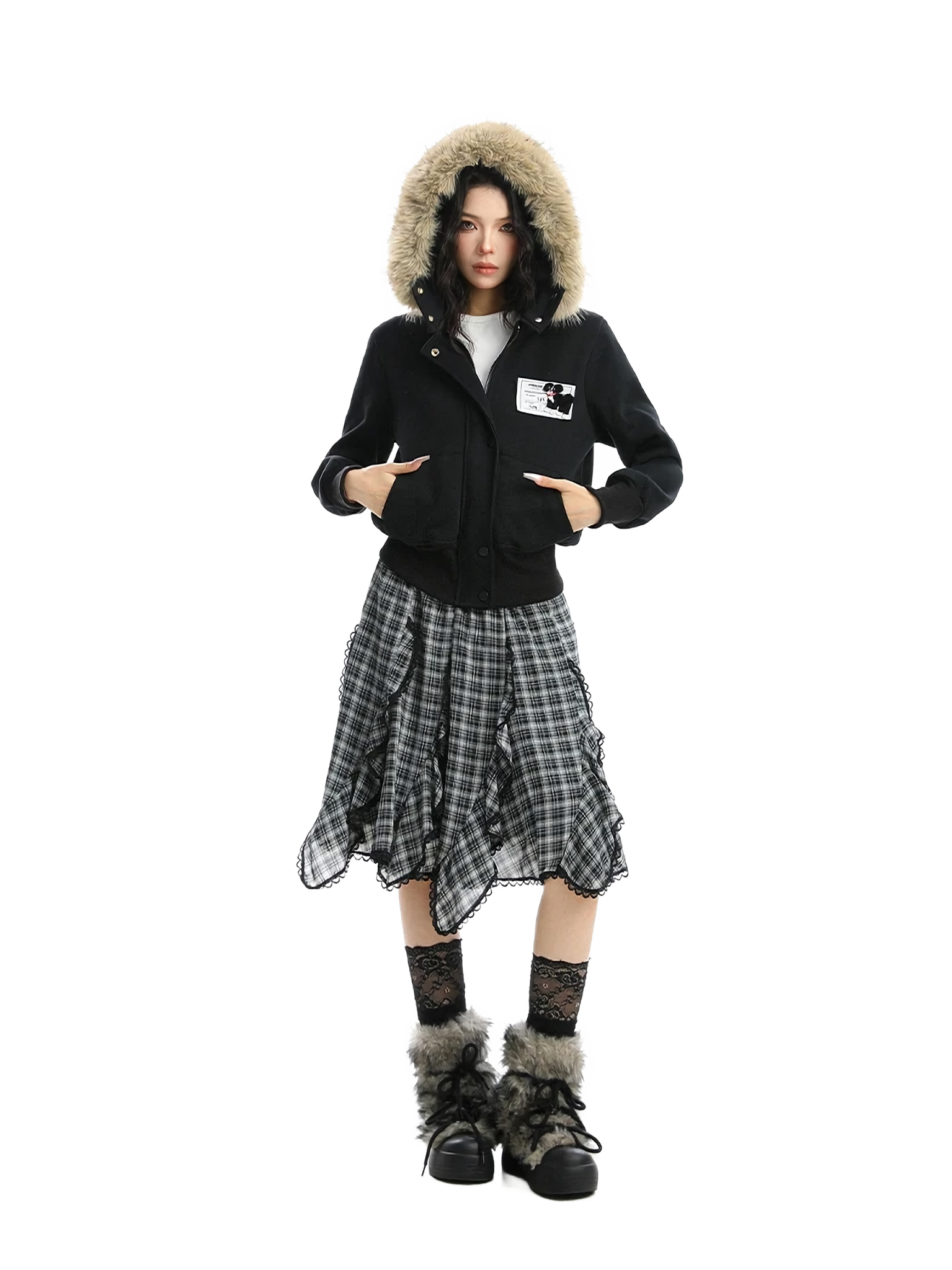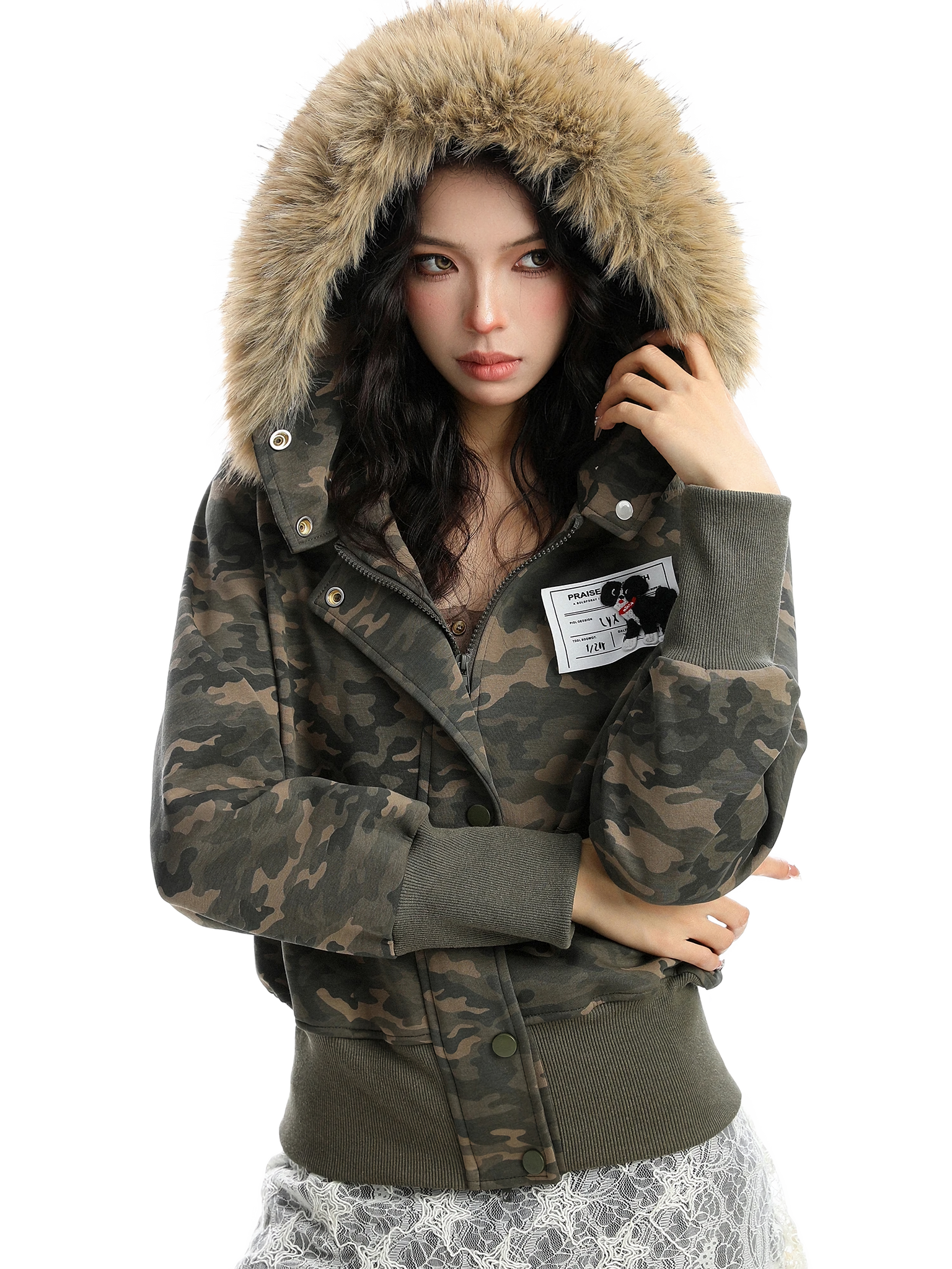 Textured outer with a soft, insulating interior, finished with a roomy hood trimmed in fluffy faux fur. Pair with straight-leg pants or a skirt and boots.