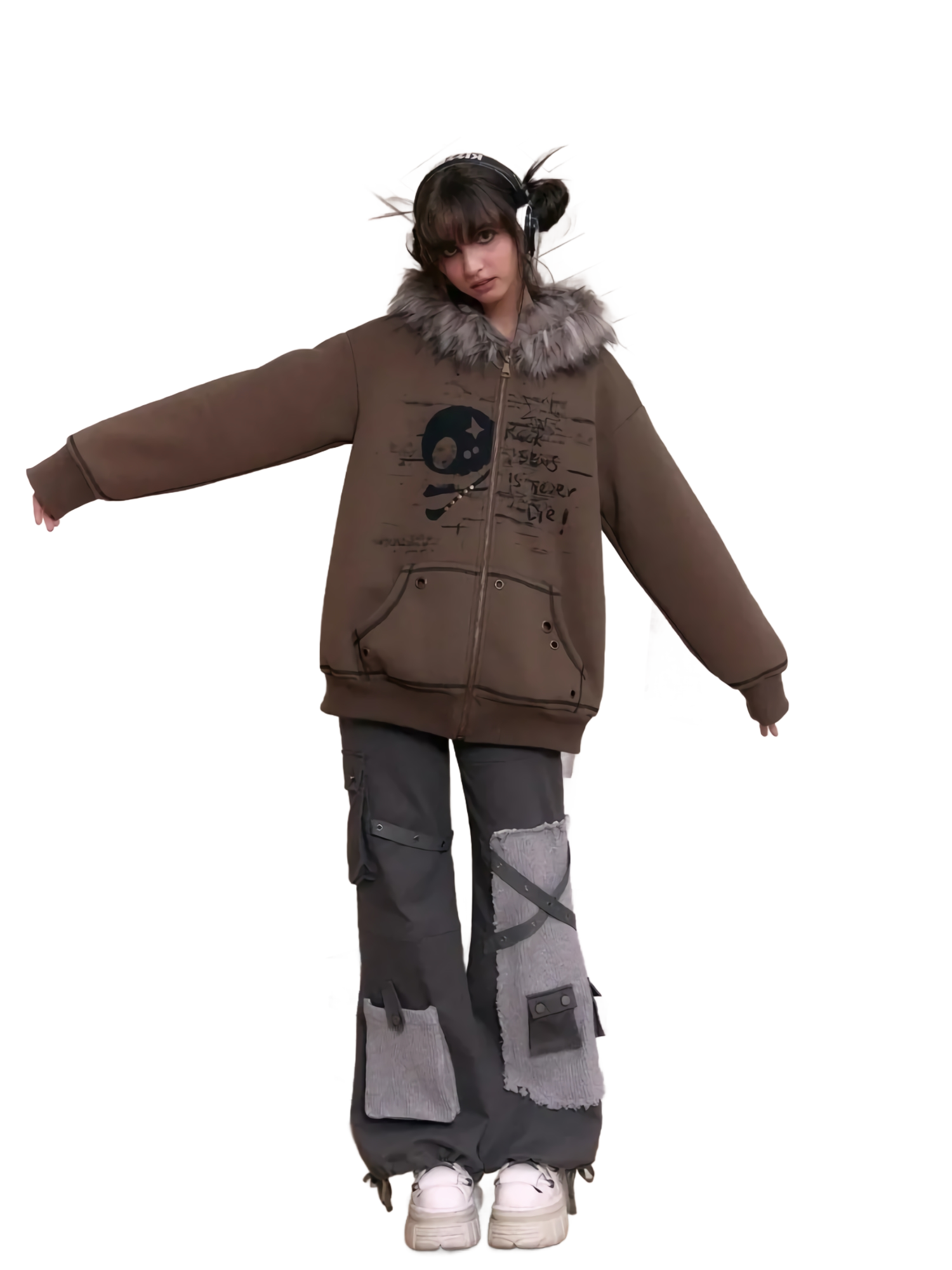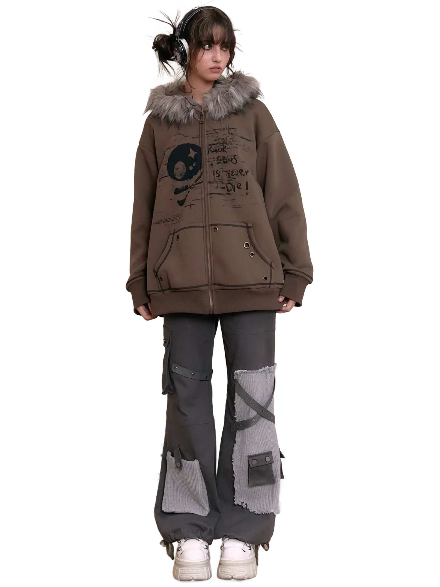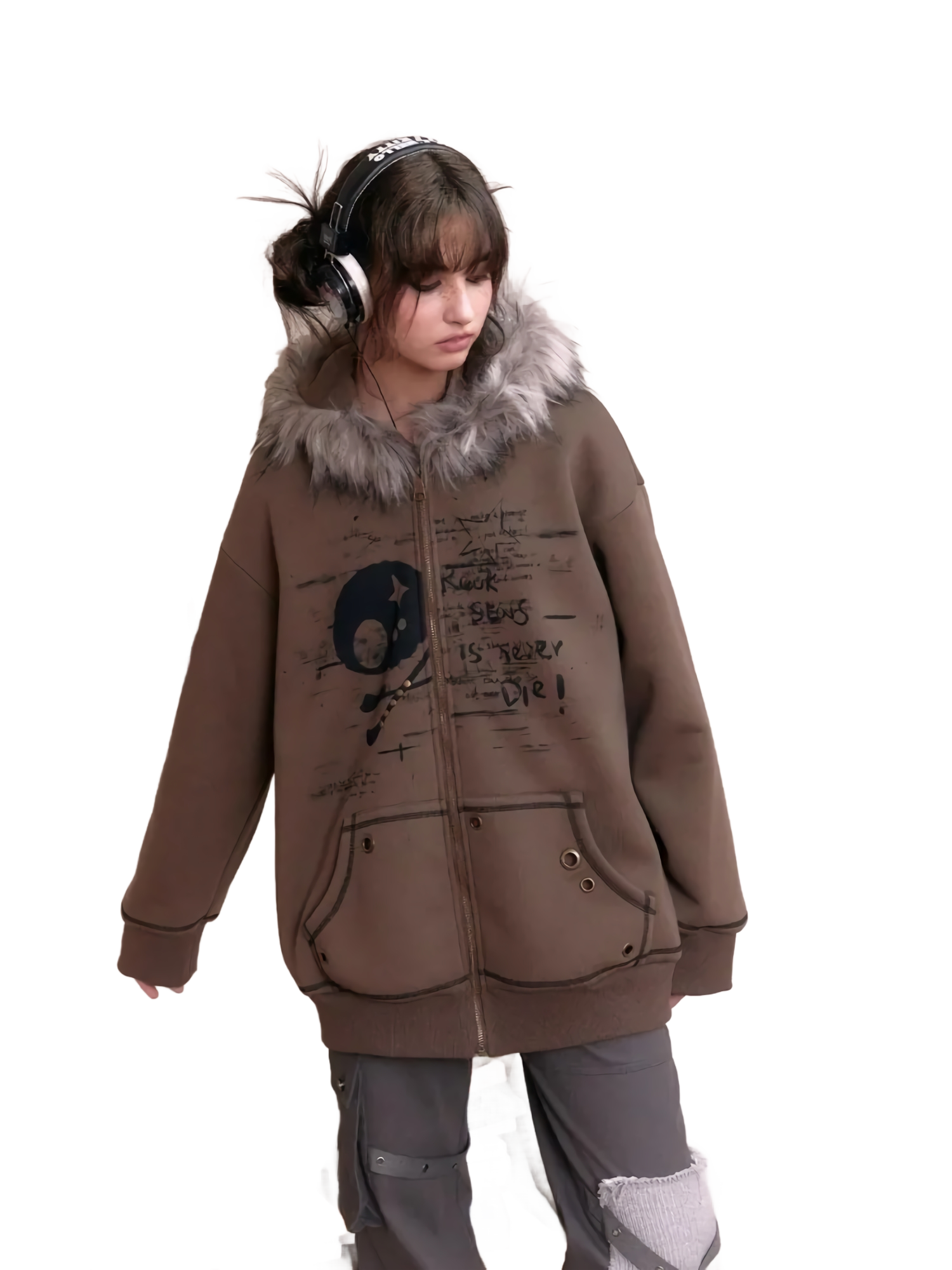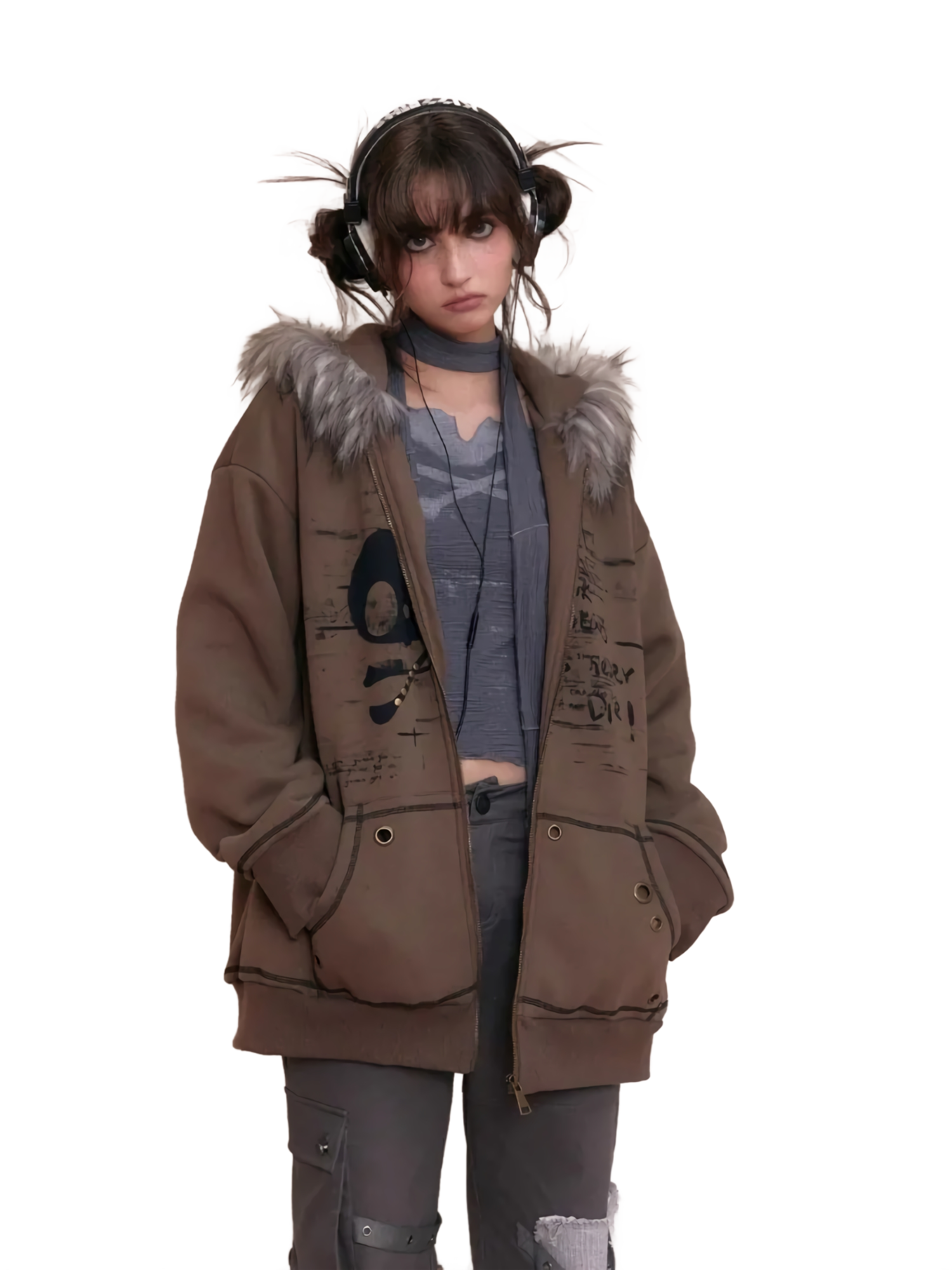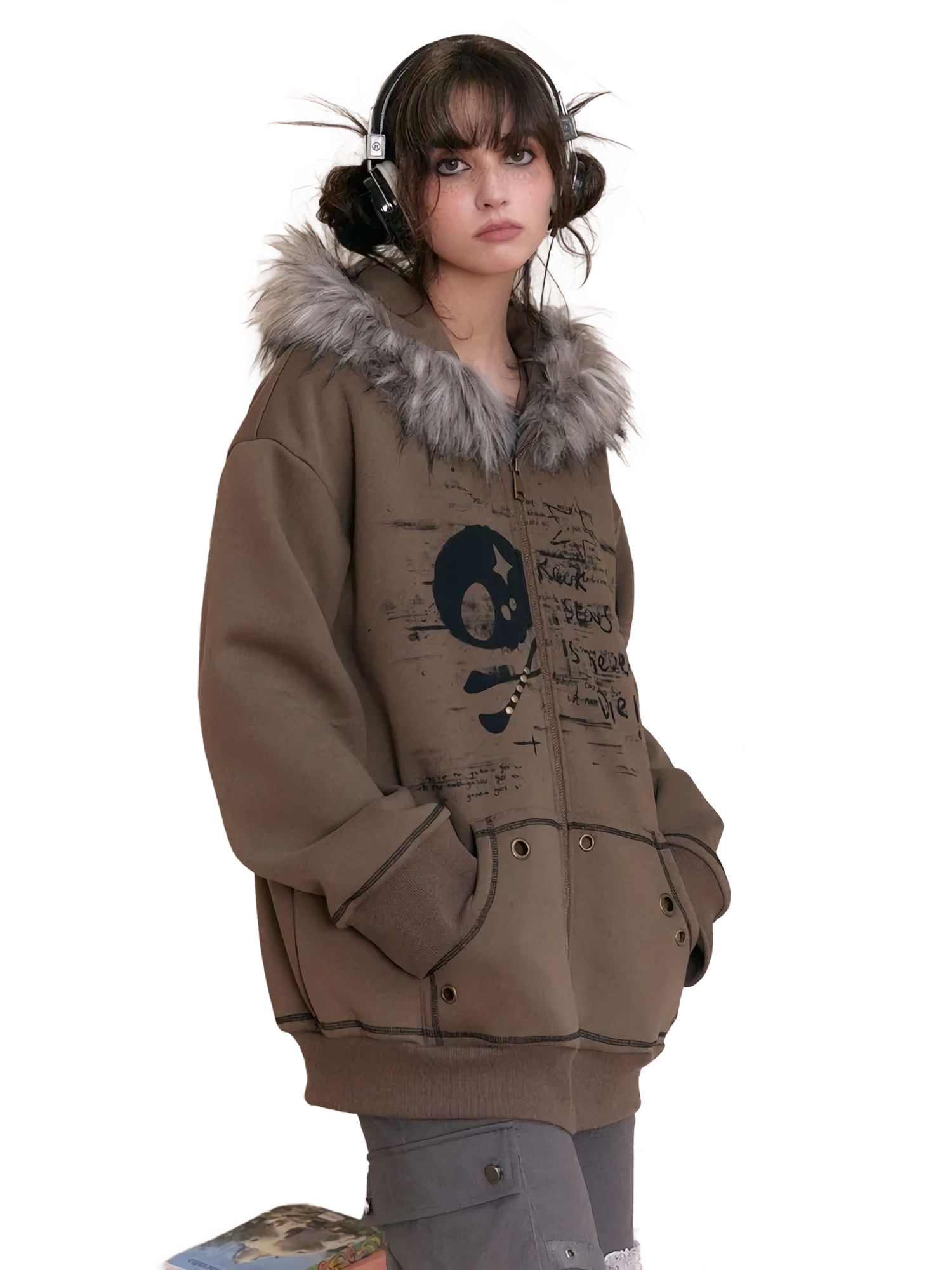 Features: Polyester faux fur-lined hood