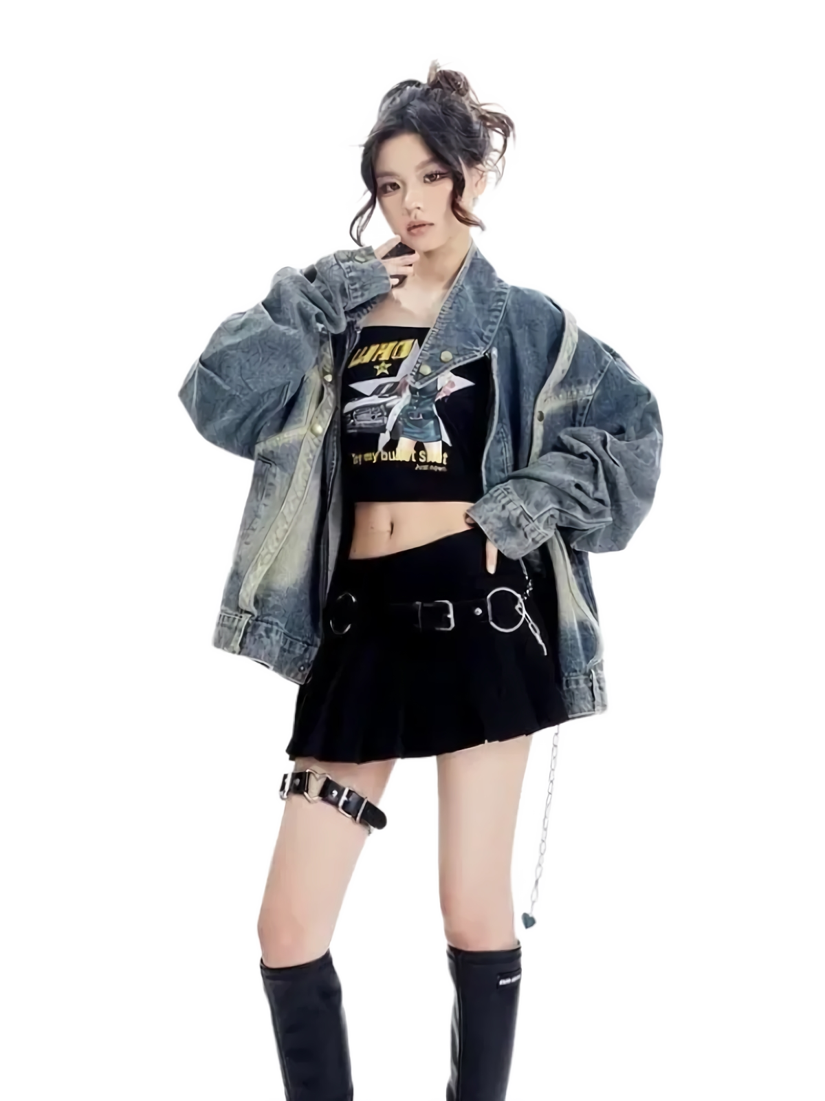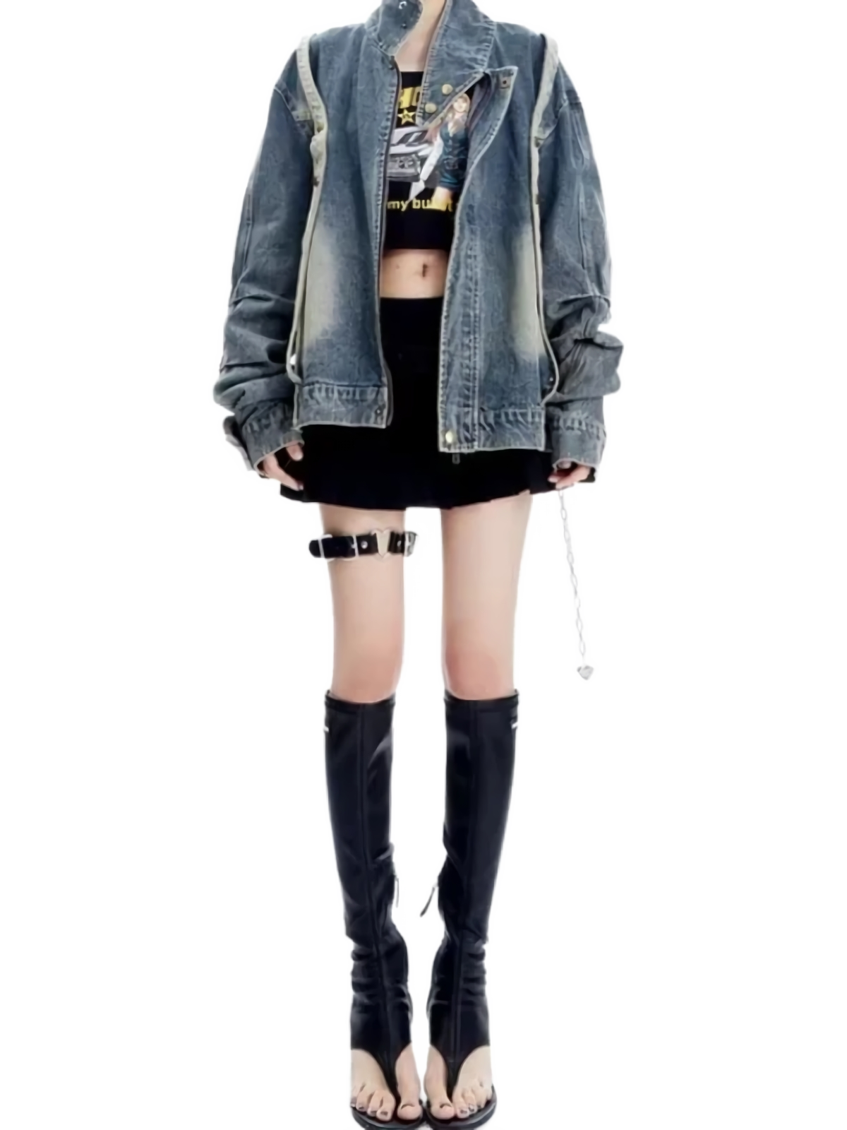 Heavy Retro Wash Strapped Denim Jacket